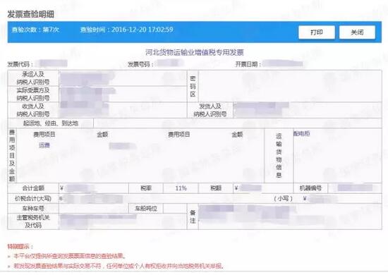 (6)本平臺僅提供所查詢發(fā)票票面信息的查驗結(jié)果。如對查驗結(jié)果有疑議,請持發(fā)票原件至當(dāng)?shù)囟悇?wù)機(jī)關(guān)進(jìn)行鑒定。